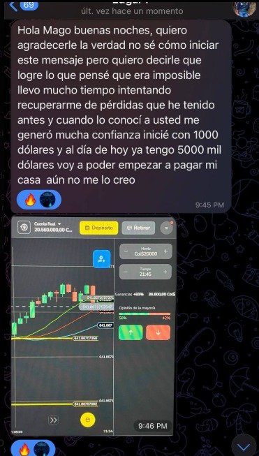 Soy El Mago del Trading, mentor y operador profesional con más de 5 años de experiencia en los mercados financieros. He logrado construir una carrera sólida operando con éxito en criptomonedas, forex y acciones. Mi enfoque no está basado en promesas vacías, sino en disciplina, análisis técnico avanzado y control emocional. He formado a cientos de traders alrededor del mundo que hoy operan con criterio, control del riesgo y rentabilidad sostenida. Este no es un canal de señales, es una escuela para traders reales.